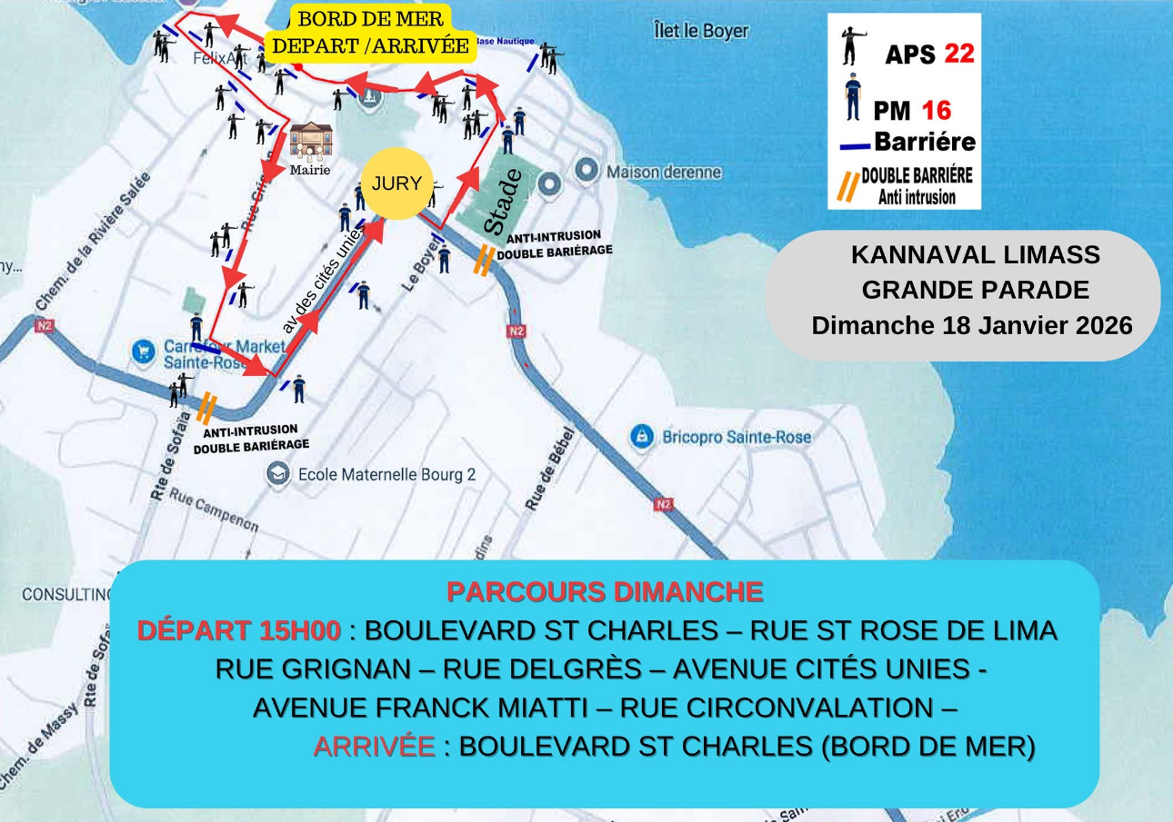 La Ville de Sainte-Rose invite l’ensemble de la population à profiter pleinement du KANNAVAL LIMA’SS 2026, dans un esprit de fête, de respect et de sécurité.