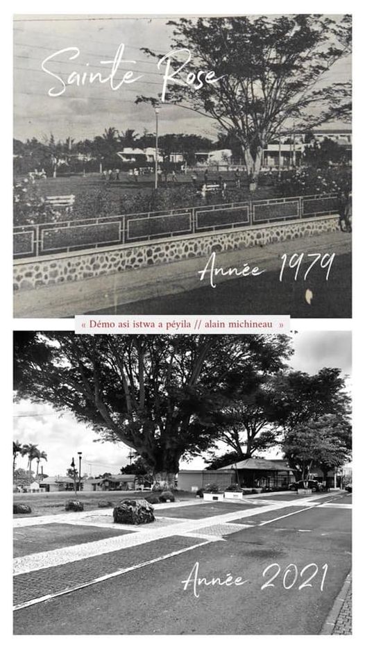 Le Jardin Public de Sainte Rose était à l’époque la fierté de la ville. Sa clôture faite de pierres taillées et son intérieur verdoyant faisaient le charme et l’authenticité du site. « Démo asi istwa a péyila // alain michineau »