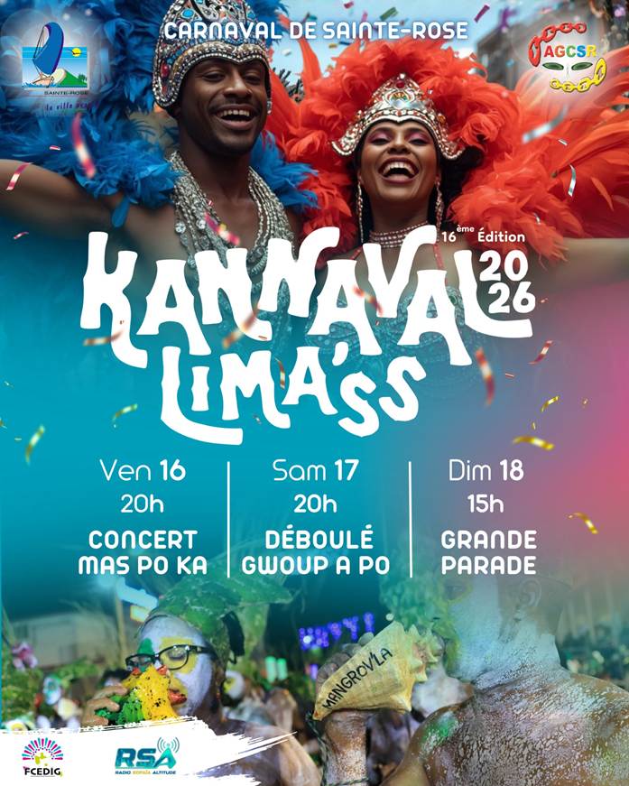 La Ville de Sainte-Rose et lâAssociation des groupes de carnaval de Sainte-Rose vous invitent au KANNAVAL LIMAâSS 2026 ! đ„đ„