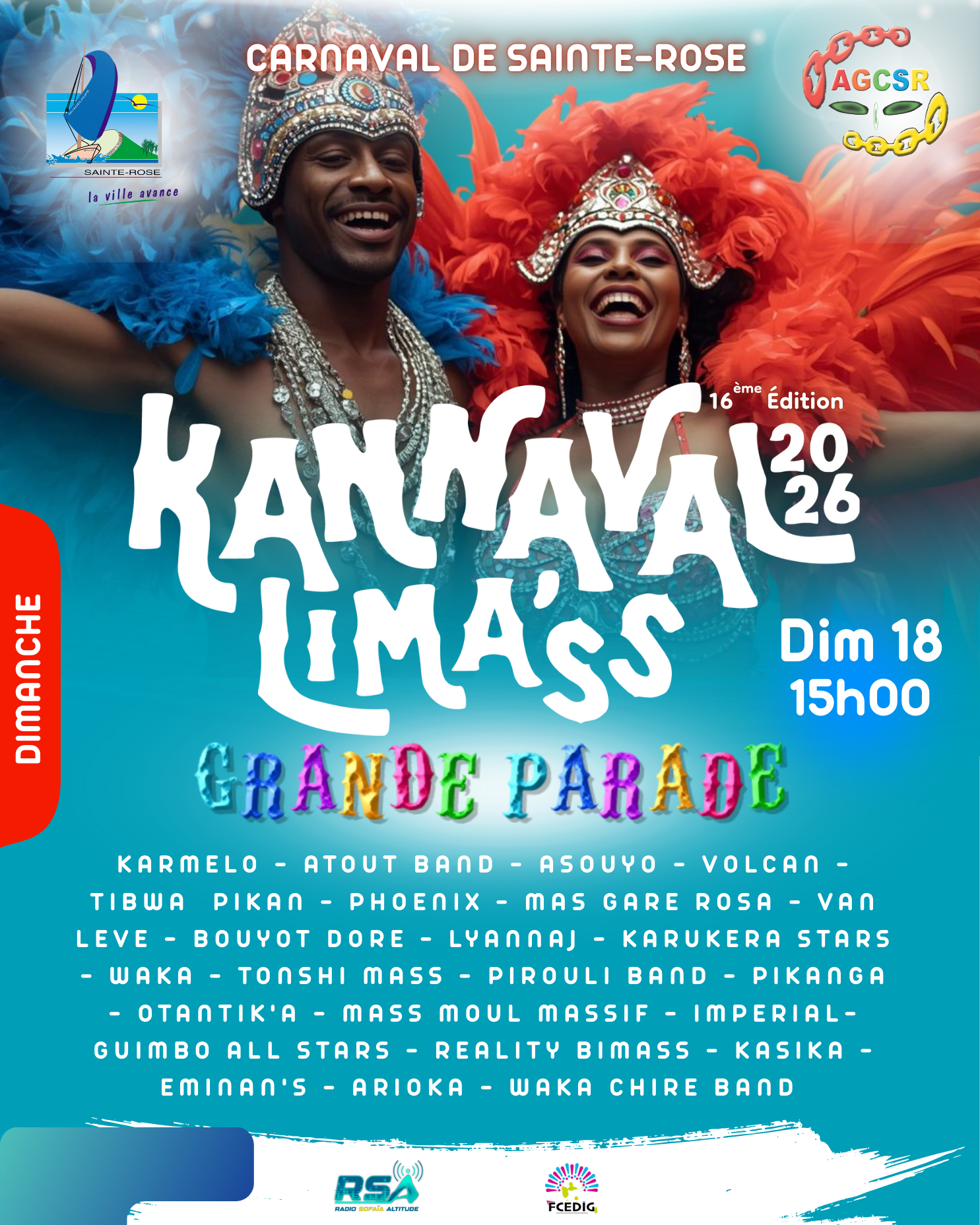 Le dimanche 18 janvier, les rues de Sainte-Rose s’animent au rythme de la grande parade du KANNAVAL LIMA’SS 2026.